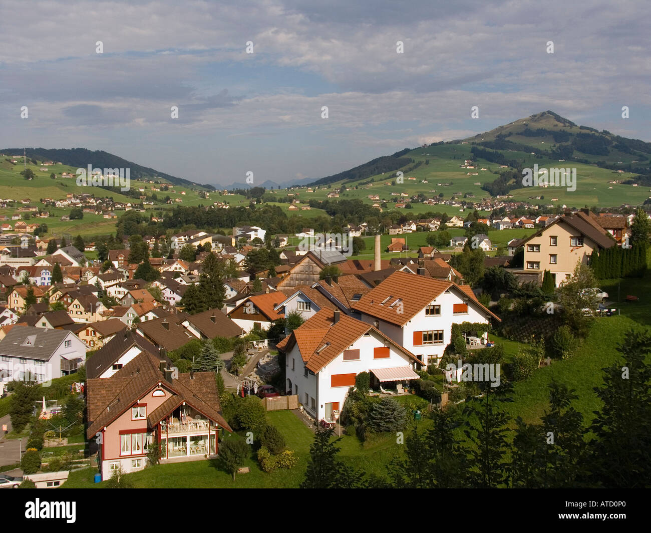 Steep roofed houses of the village of Appenzell Switzerland Stock Photo