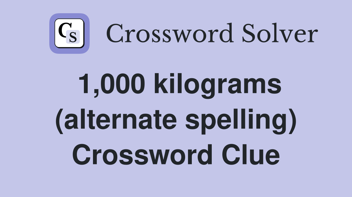 1 000 kilograms (alternate spelling) Crossword Clue Answers
