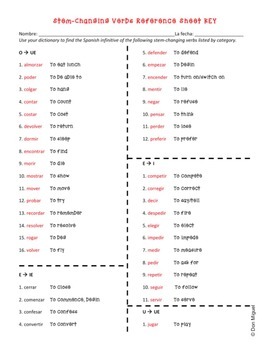 Spanish Stem Changing Verbs Worksheet by World Language Market TPT