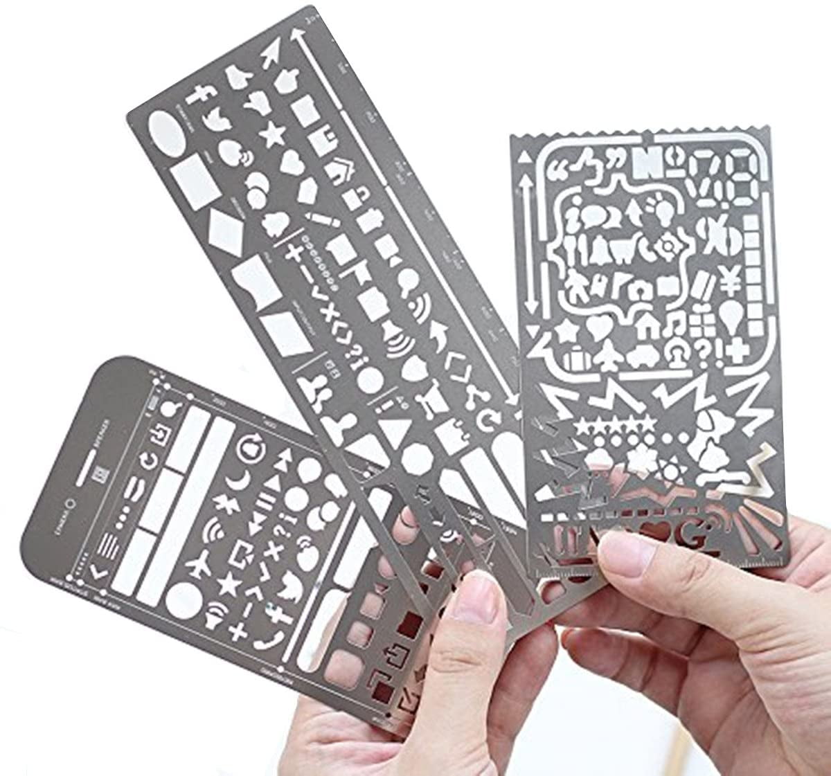 888 Pack of 3 Stainless Steel Drawing Ruler Painting Stencils Scale