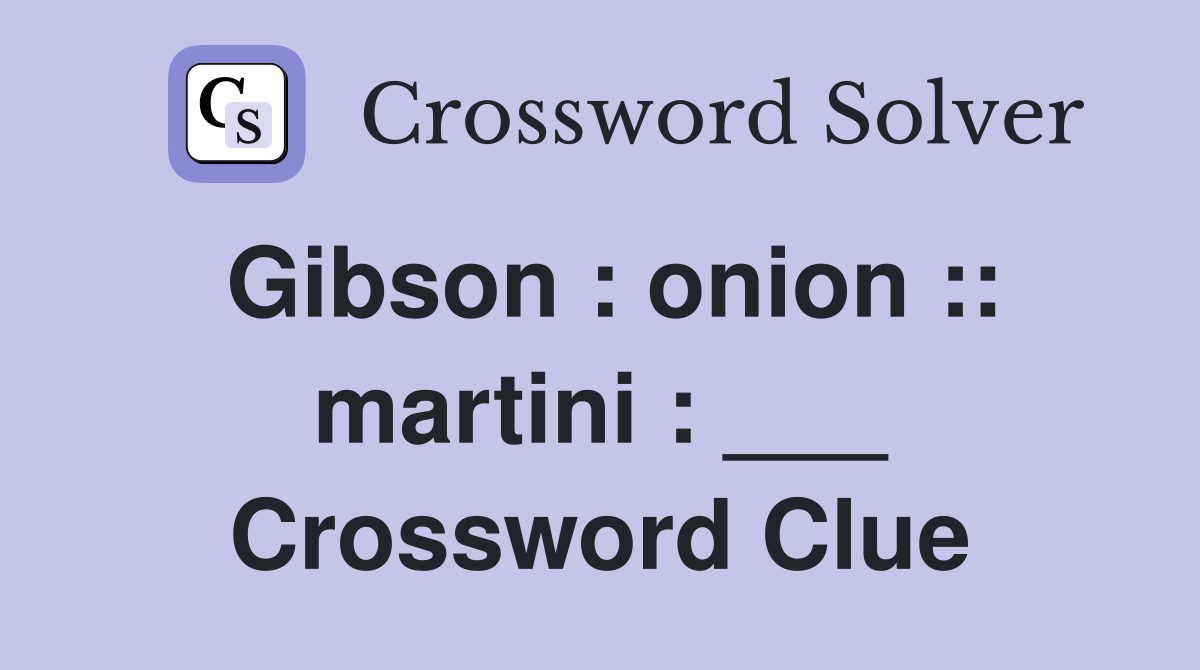 Gibson : onion :: martini : Crossword Clue Answers Crossword Solver