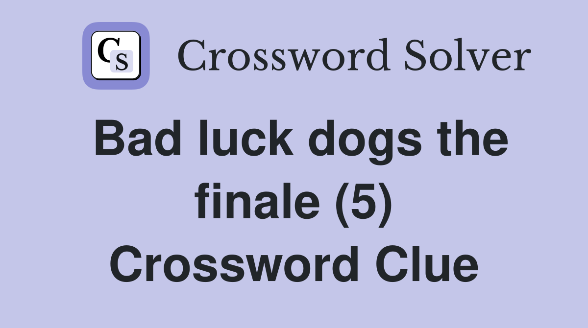 Bad luck dogs the finale (5) Crossword Clue Answers Crossword Solver