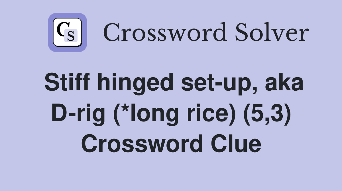 Stiff hinged set up aka D rig (*long rice) (5 3) Crossword Clue