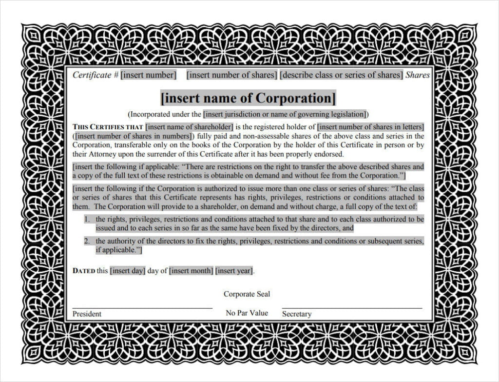 40 Free Stock Certificate Templates (Word PDF) Template Lab
