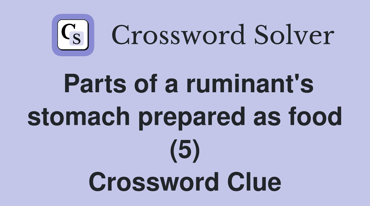 Parts of a ruminant s stomach prepared as food (5) Crossword Clue