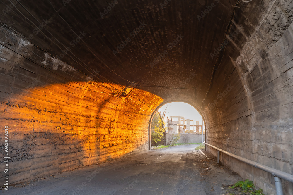 Stone tunnel Passage under road or mountain Tunnel near construction