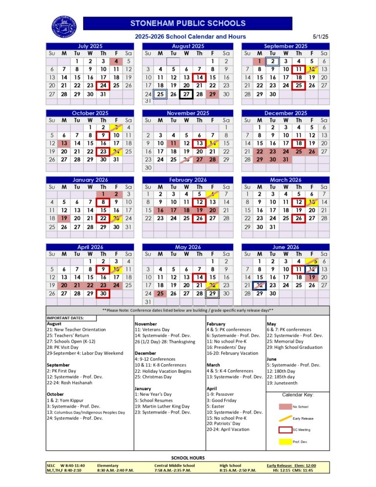 Cory 2025 2026 Stoneham Public Schools District Calendar Facebook