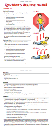 Teach students to stop drop and roll during a fire emergency with