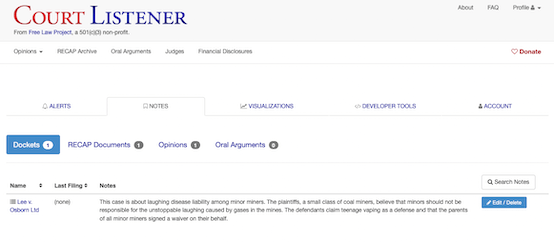 Help with Tags and Notes CourtListener com