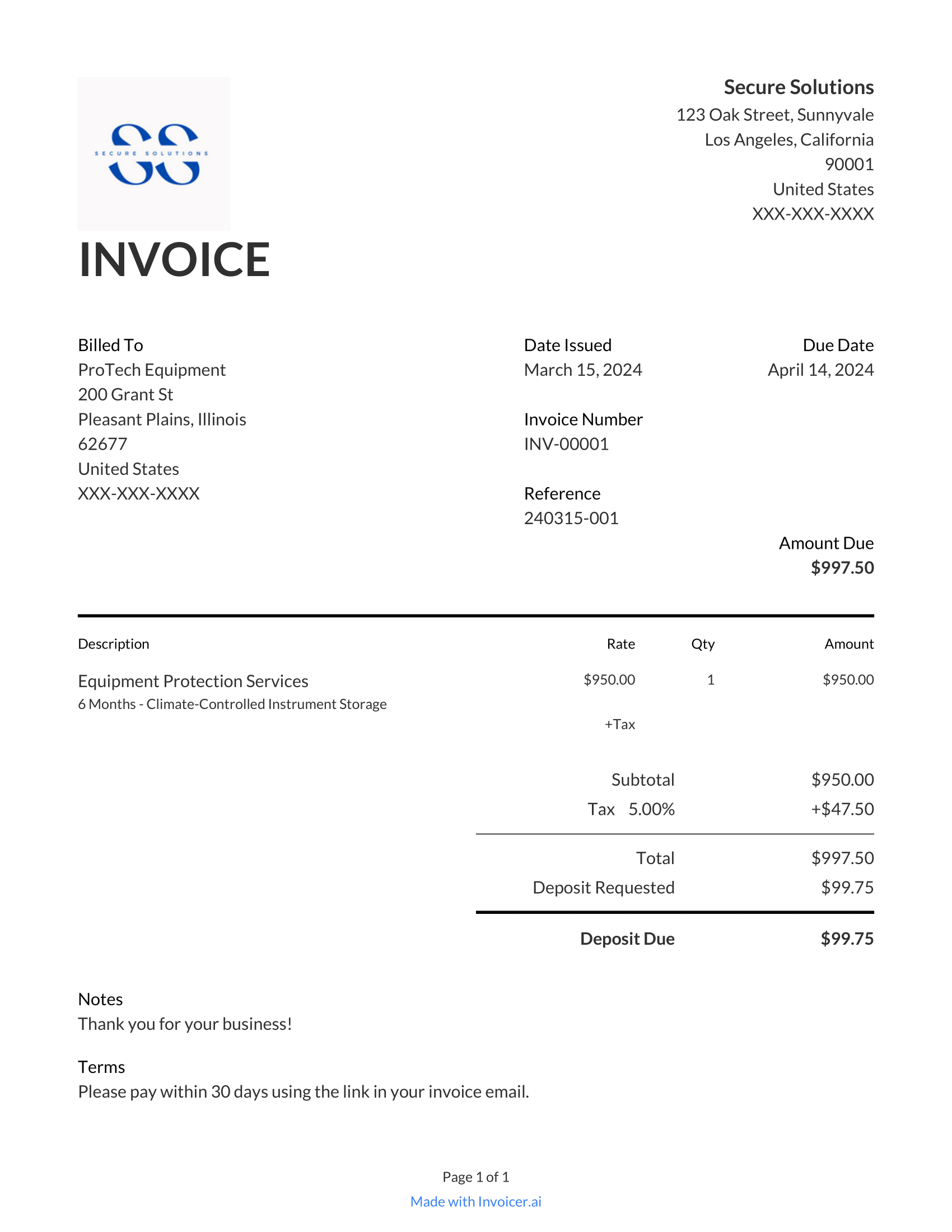 Storage Unit Invoice Template