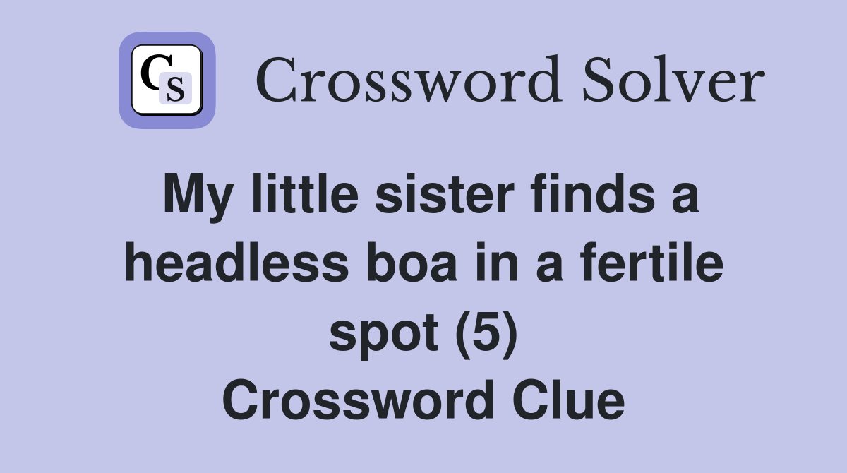 My little sister finds a headless boa in a fertile spot (5) Crossword