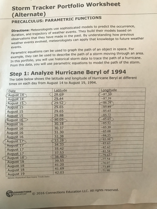 Solved Storm Tracker Portfolio Worksheet PRECALCULUS: Chegg com