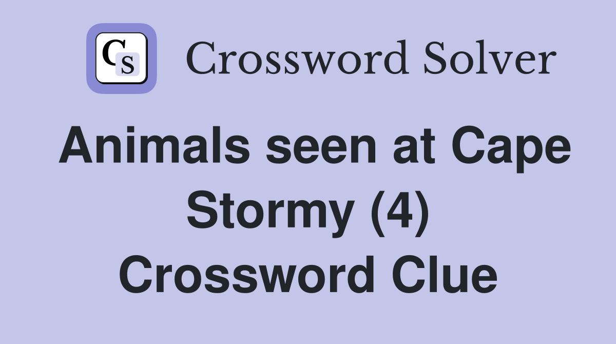 Animals seen at Cape Stormy (4) Crossword Clue Answers Crossword Solver