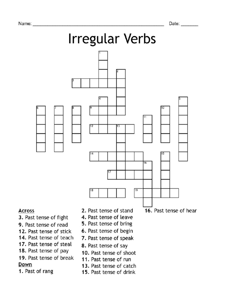 CROSSWORD:: IRREGULAR VERBS: Deutsch DAF Arbeitsblätter pdf doc