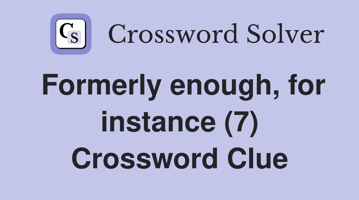 Formerly enough for instance (7) Crossword Clue Answers Crossword
