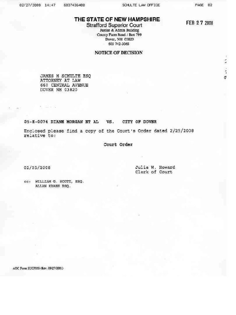 Morgan v Dover Strafford County Superior Court Ruling For Back Road