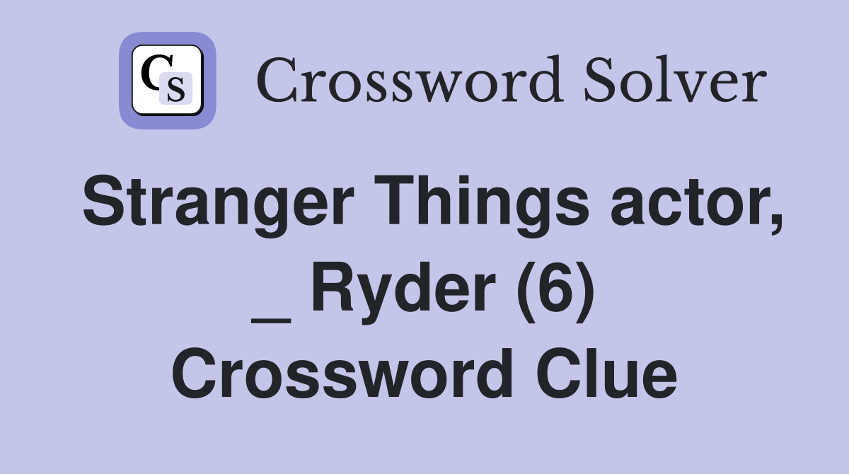 Stranger Things actor Ryder (6) Crossword Clue Answers Crossword