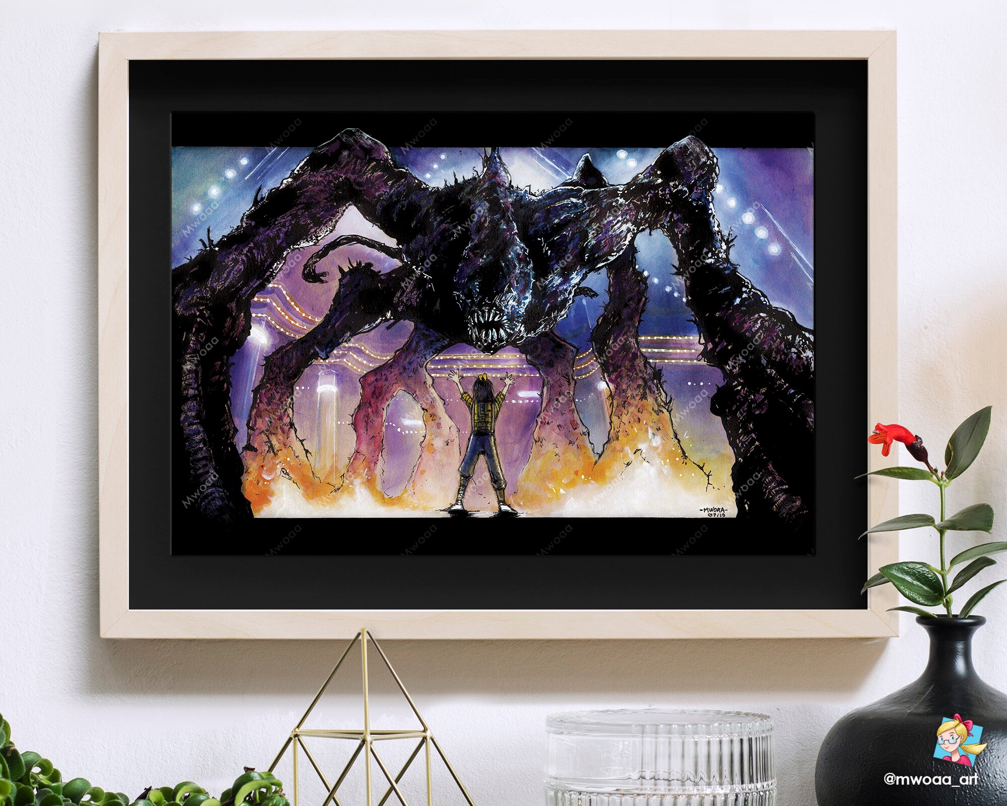 Stranger Things A4 Black and White and Watercolor Illustration Etsy