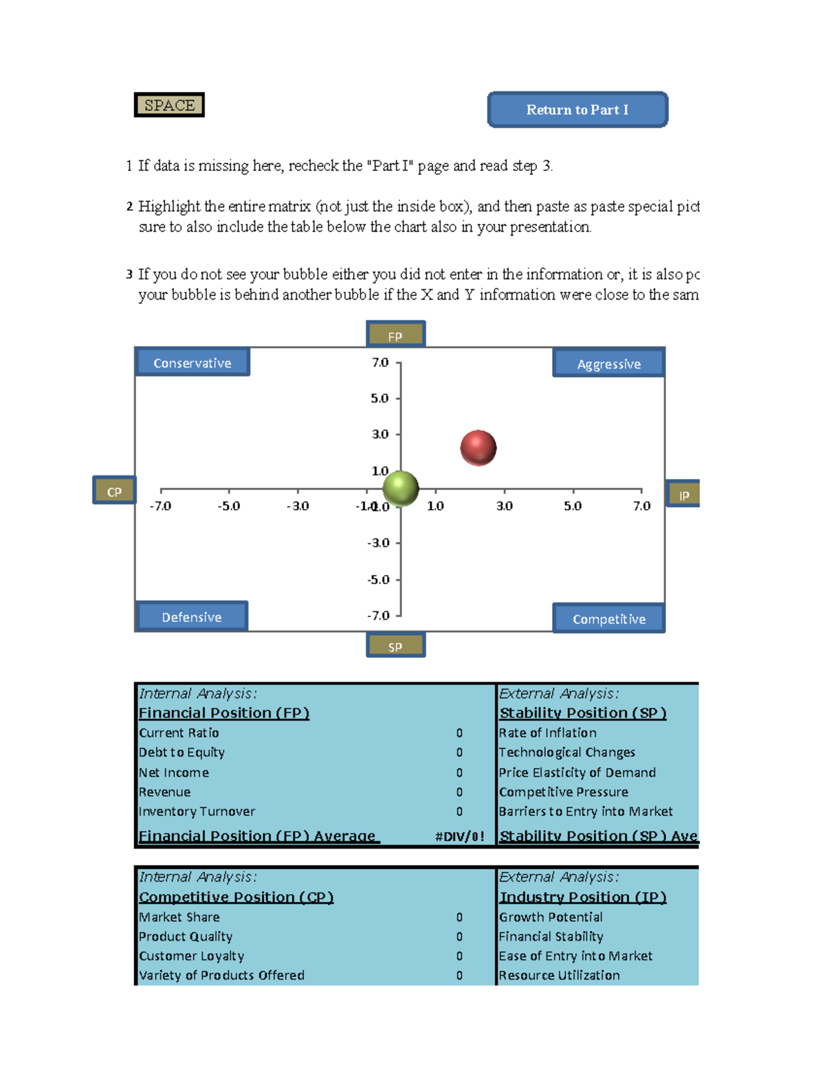 Strategic Management Template SPACE 1 2 3 Internal Analysis: External