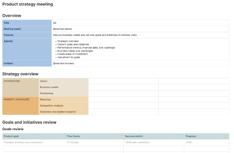 Product Strategy Meeting Template Try for Free