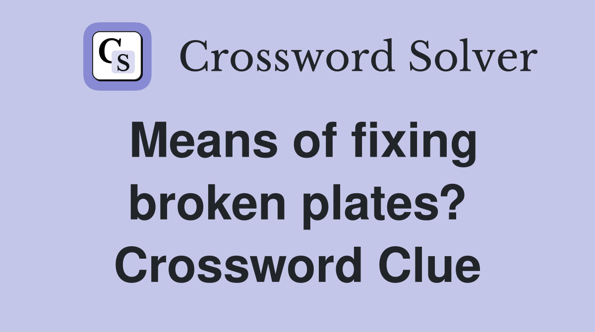 Means of fixing broken plates? Crossword Clue Answers Crossword Solver