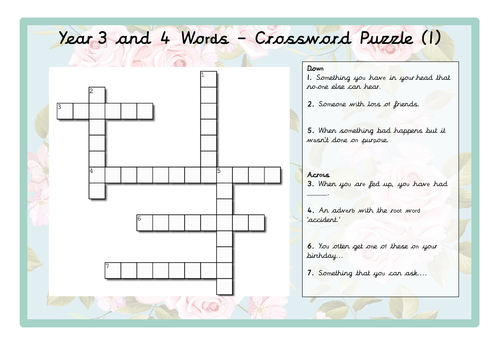 Year 3 4 Statutory Spellings Crossword Practise Mats Rose Design
