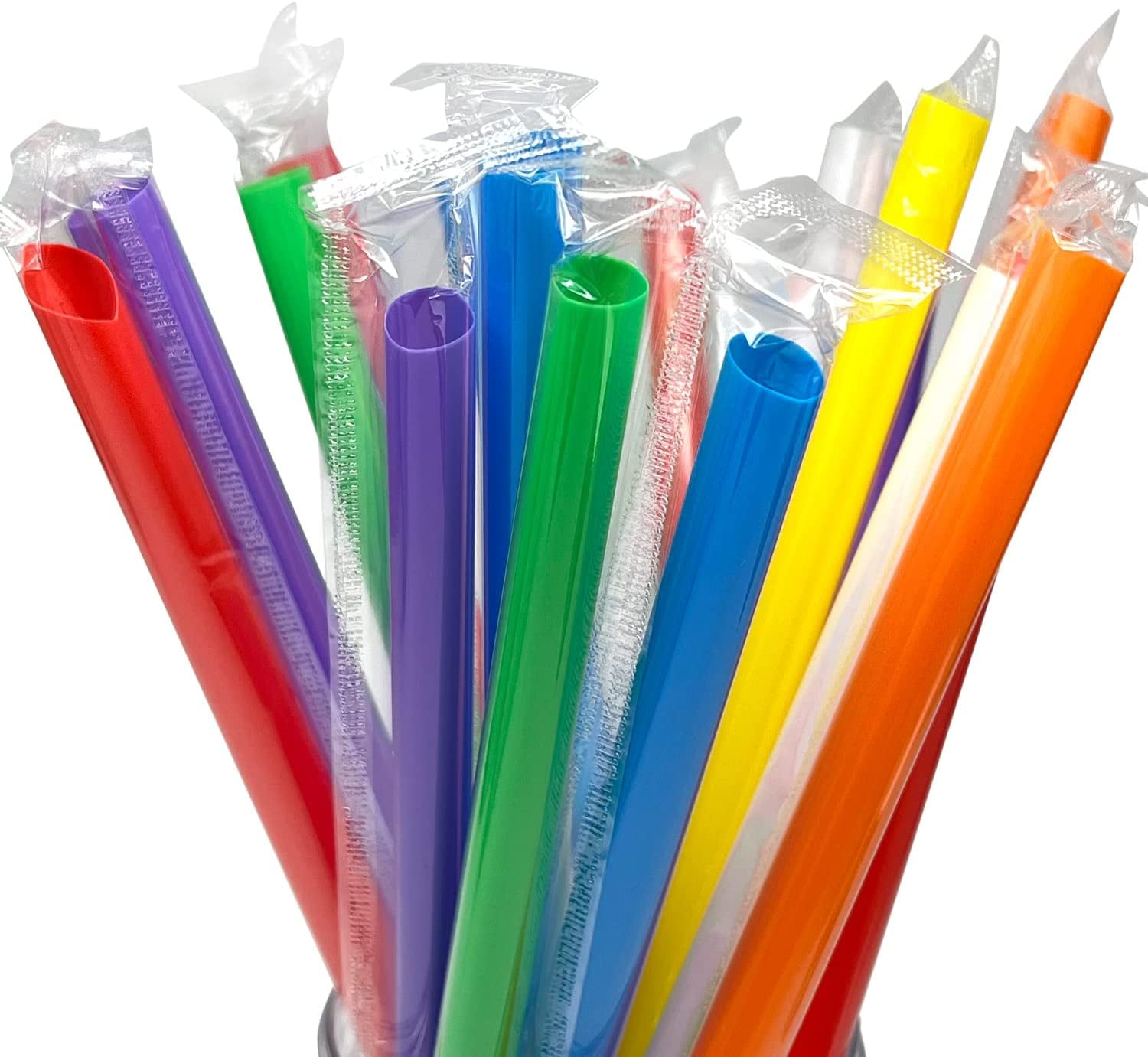 Chainplus 100 Pcs Jumbo Smoothie Straws Boba Straws Colorful Disposable