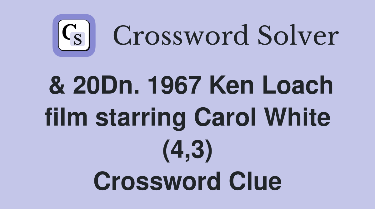 20Dn 1967 Ken Loach film starring Carol White (4 3) Crossword Clue
