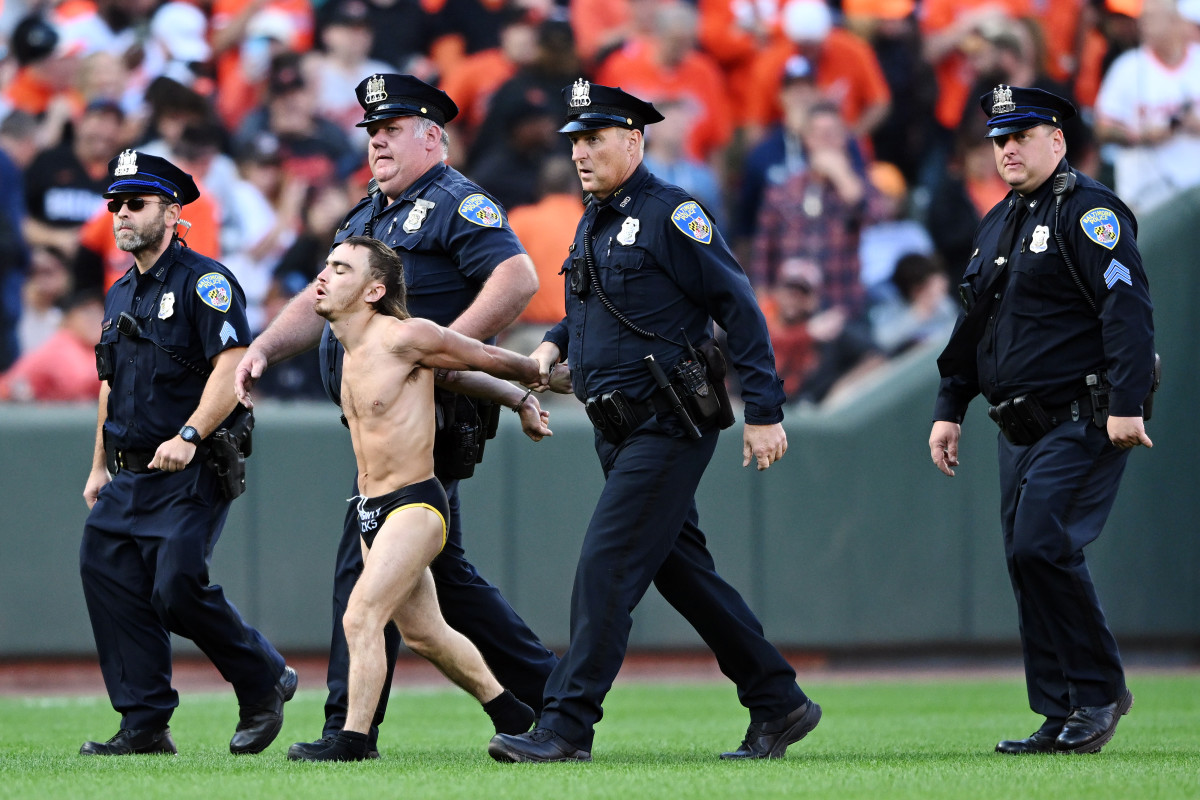 Streaker at Baltimore Orioles playoff game gets BODY SLAMMED by