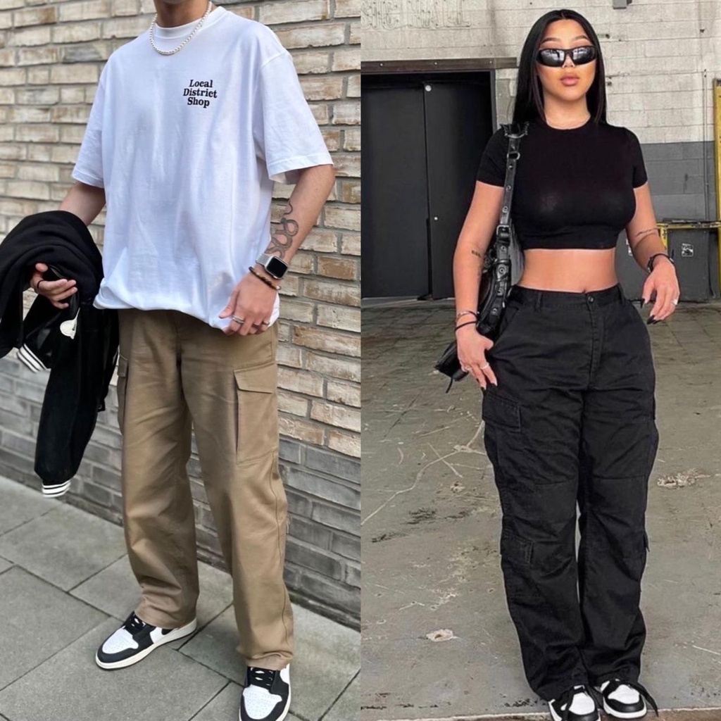 Calça Cargo Blogueira jeans Streetwear Sarja Larga Unissex Skate 6
