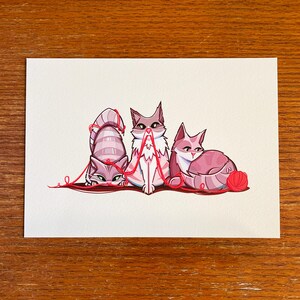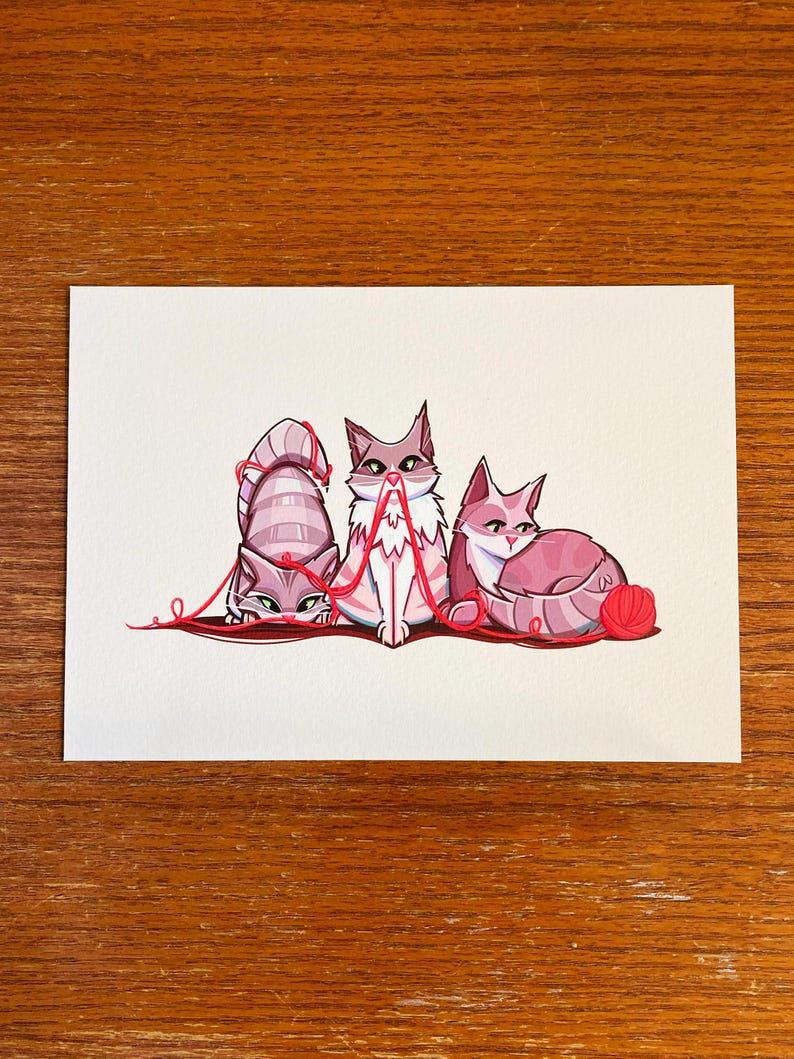 Strings Attached Cats Art Print Giclee 7x5 Etsy