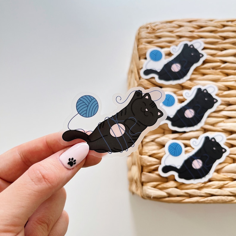 Cat Yarn Sticker Orange Cat Sticker Black Cat Sticker Funny Cat
