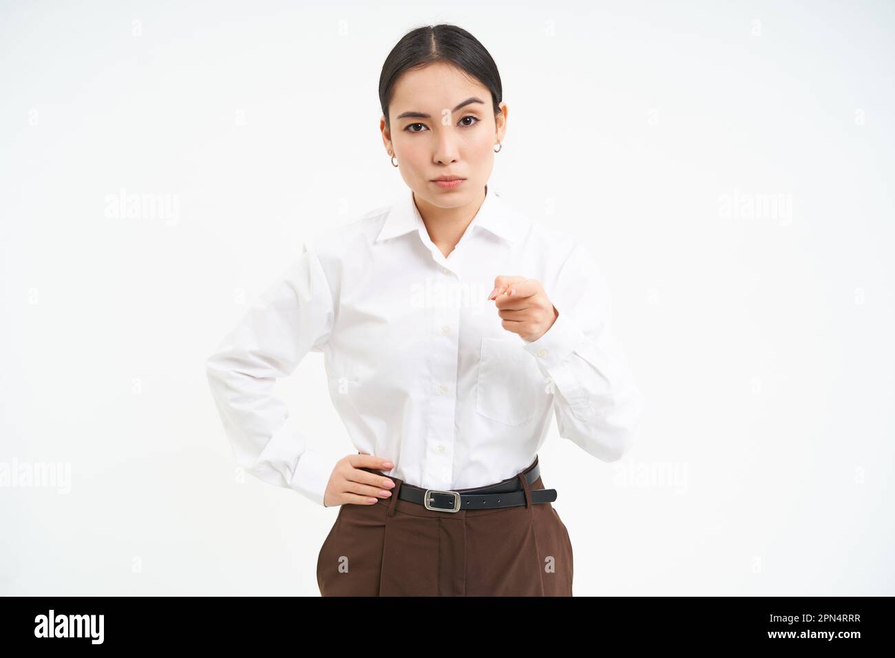 Strict serious businesswoman isolated on white Stock Photo Alamy