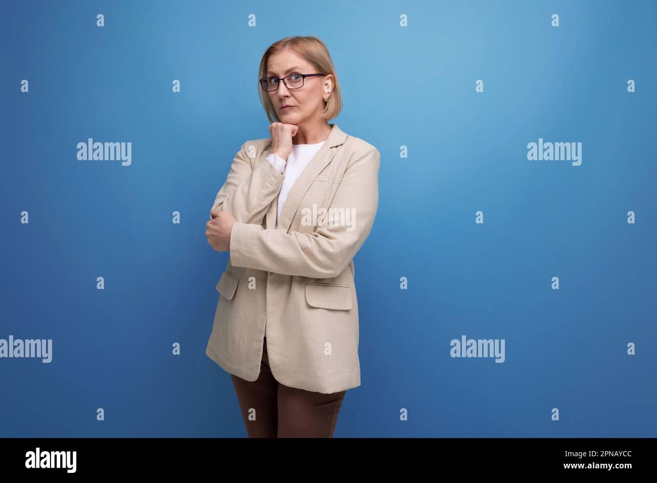 A close portrait of a strict serious blonde 22252282 Stock Photo at