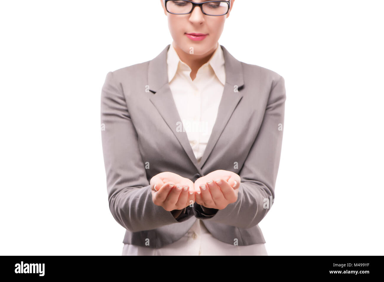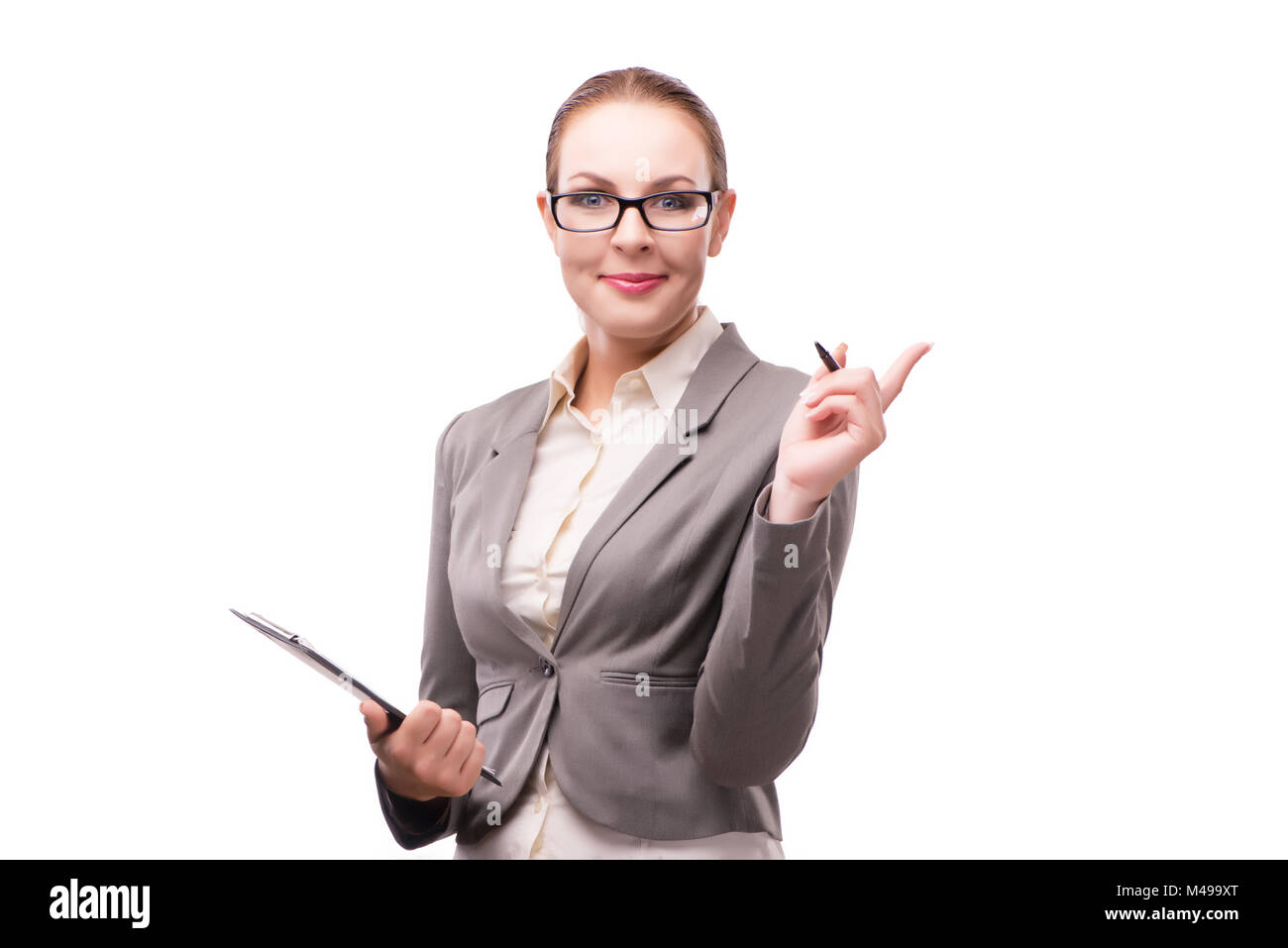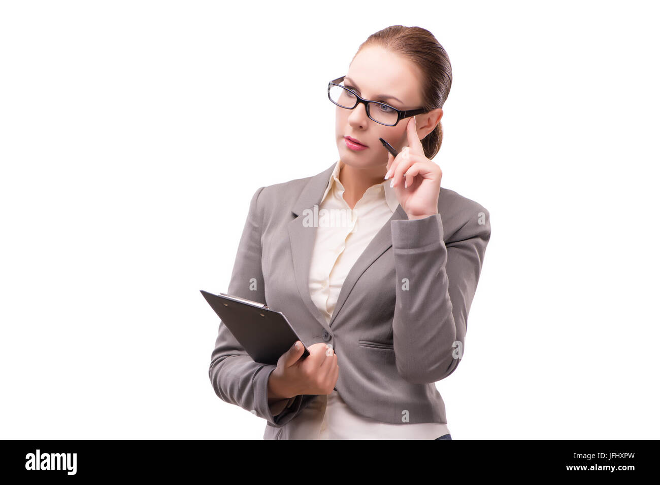 The strict serious businesswoman isolated on white Stock Photo Alamy