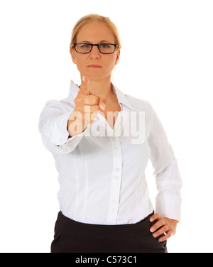 Portrait of businesswoman with strict serious face expression points