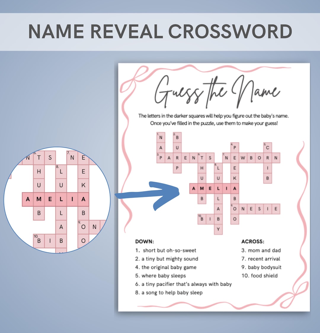 Customized Name Reveal Crossword Game Name Announcement