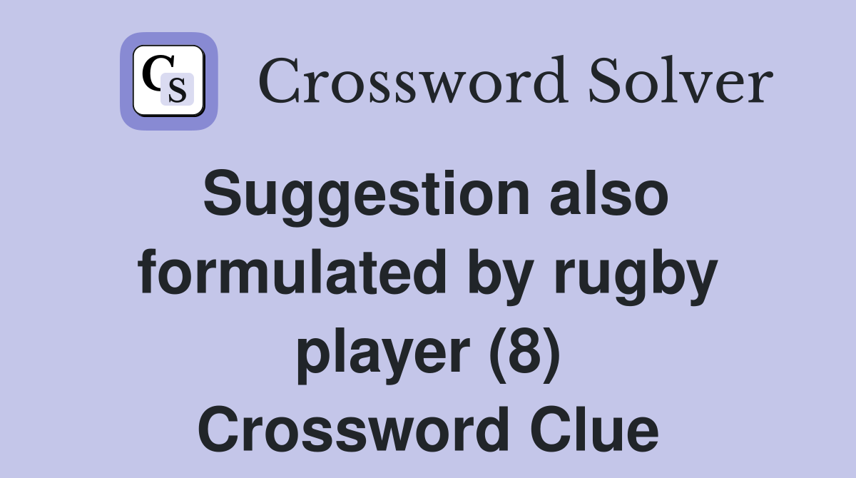 Suggestion also formulated by rugby player (8) Crossword Clue Answers