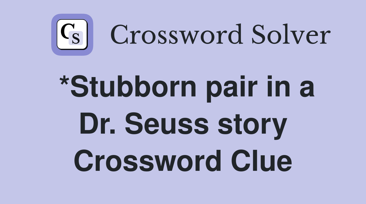 *Stubborn pair in a Dr Seuss story Crossword Clue Answers