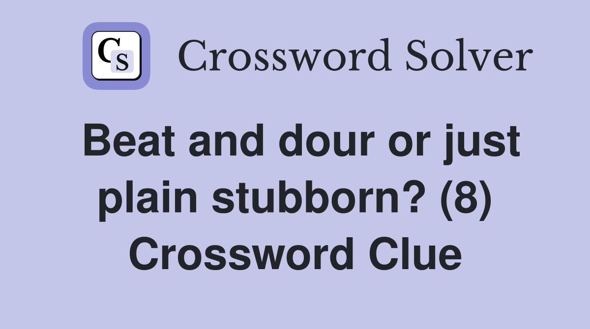 Beat and dour or just plain stubborn? (8) Crossword Clue Answers