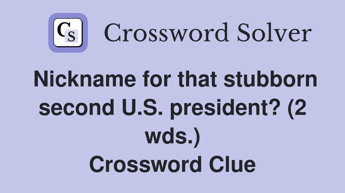 Nickname for that stubborn second U S president? (2 wds ) Crossword