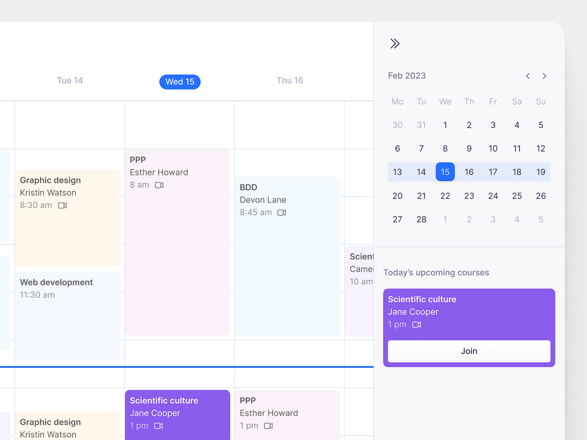 Student calendar app by Camille Saphore on Dribbble