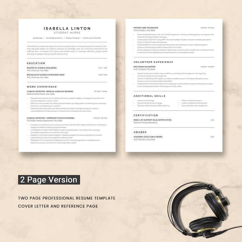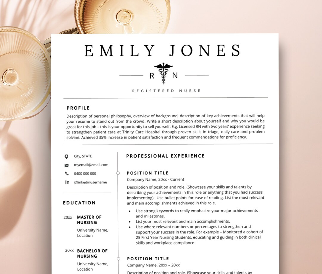 Nurse Resume Template Student Nurse Resume Template Nurse CV Etsy