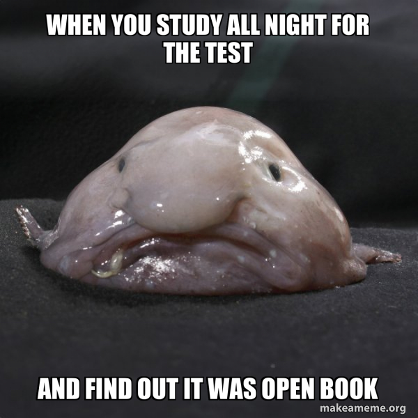 When you study all night for the test And find out it was open book
