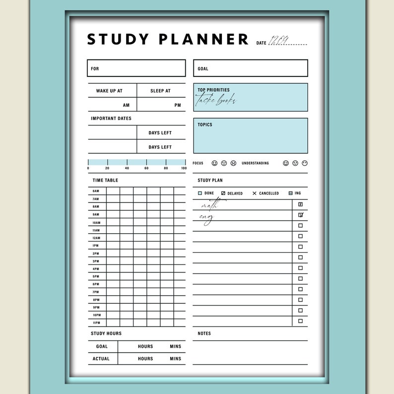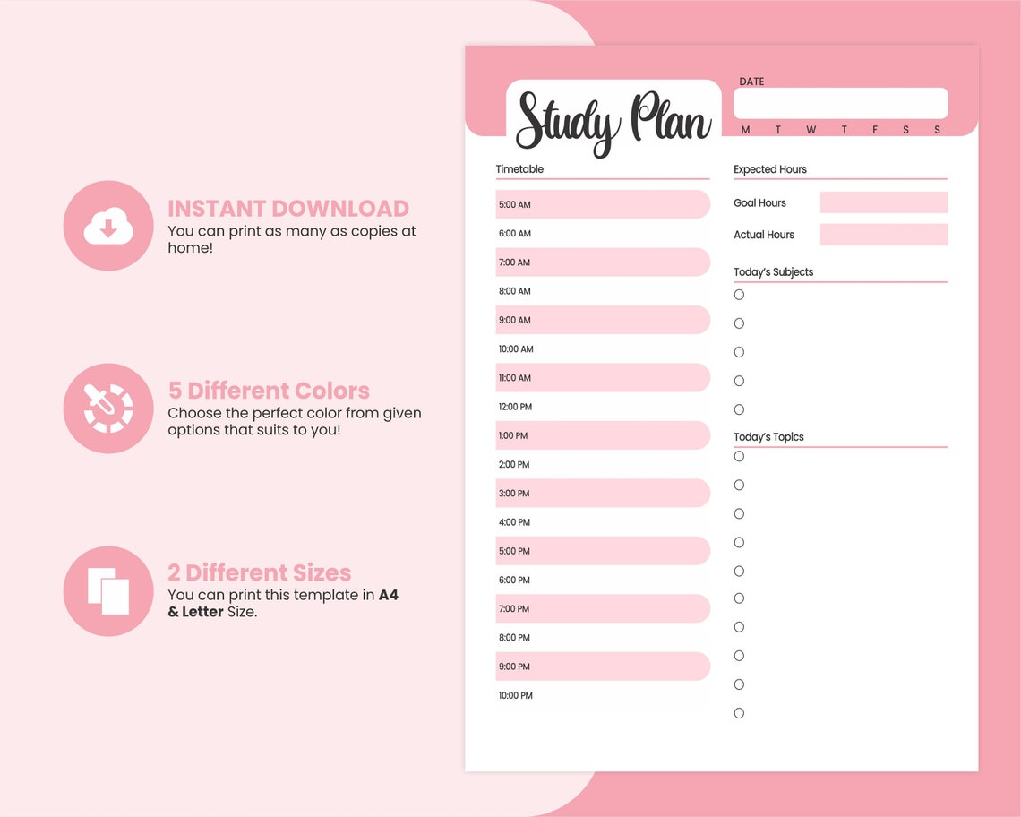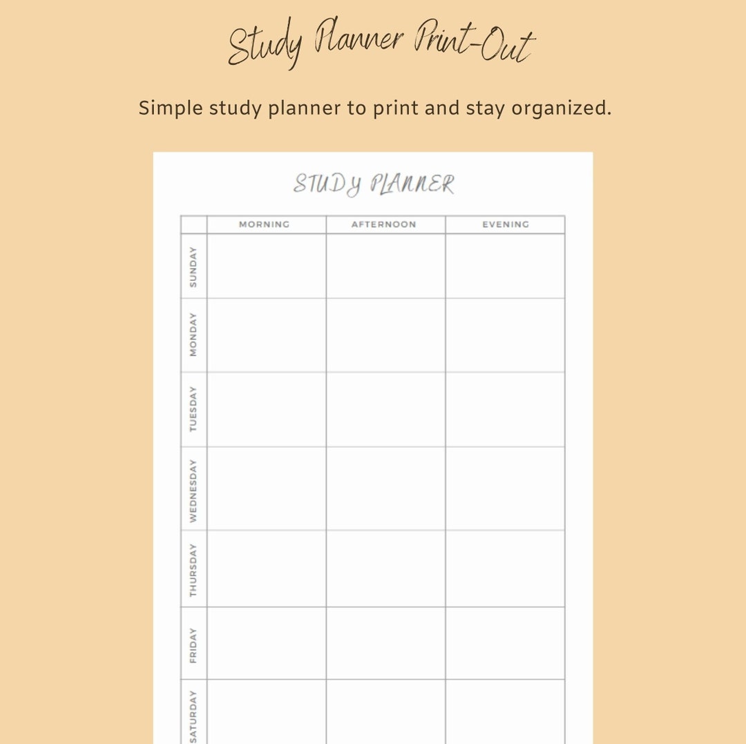 Study Planner Printable Print at Home Study Plan Student Etsy