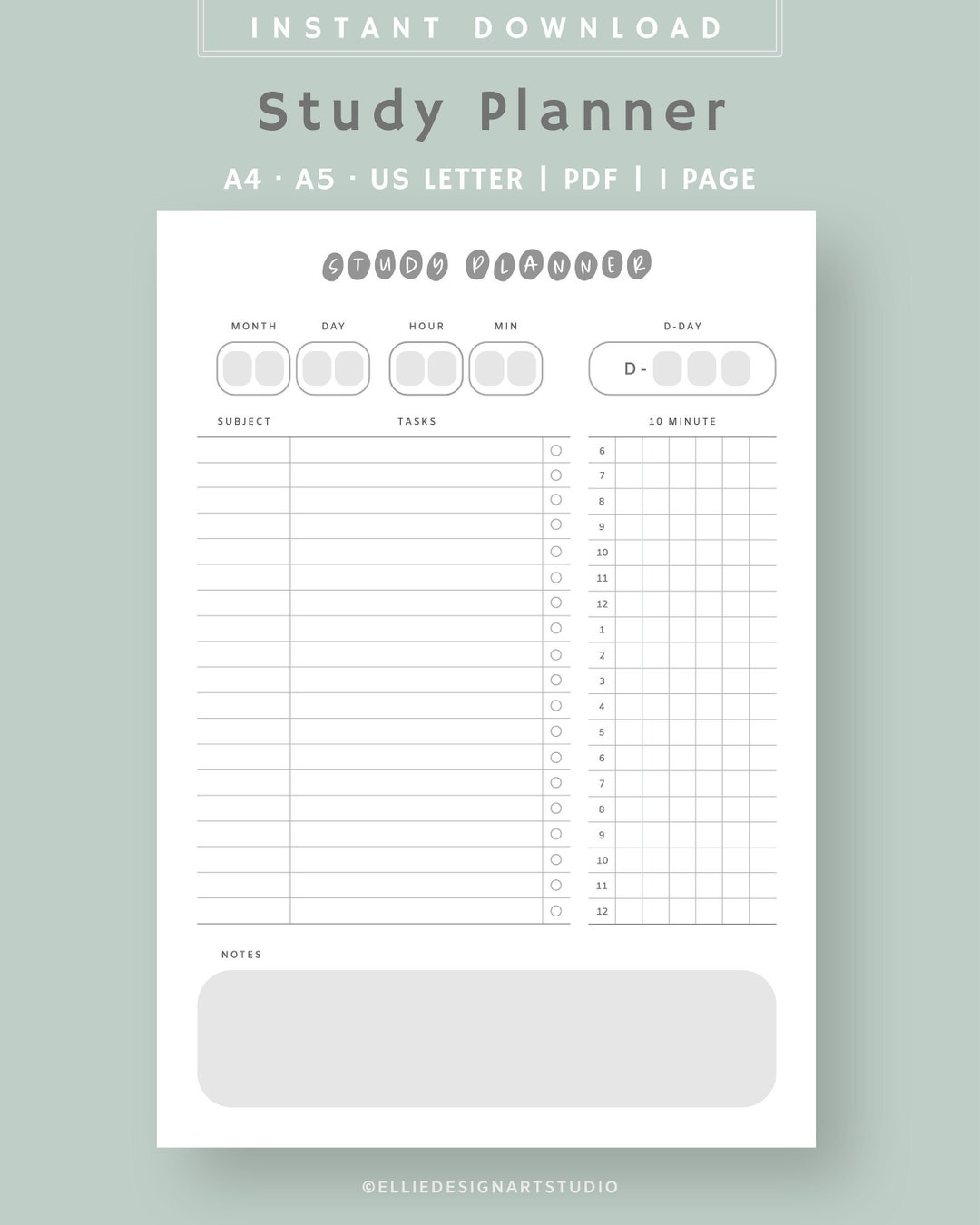 Printable Study Planner Digital Study Planner PDF Subject Planner