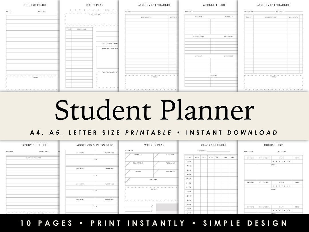 Student Planner Study Planner Printable Academic Planner Etsy