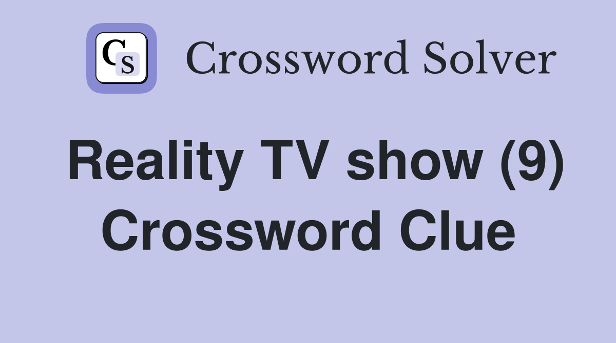 Reality TV show (9) Crossword Clue Answers Crossword Solver