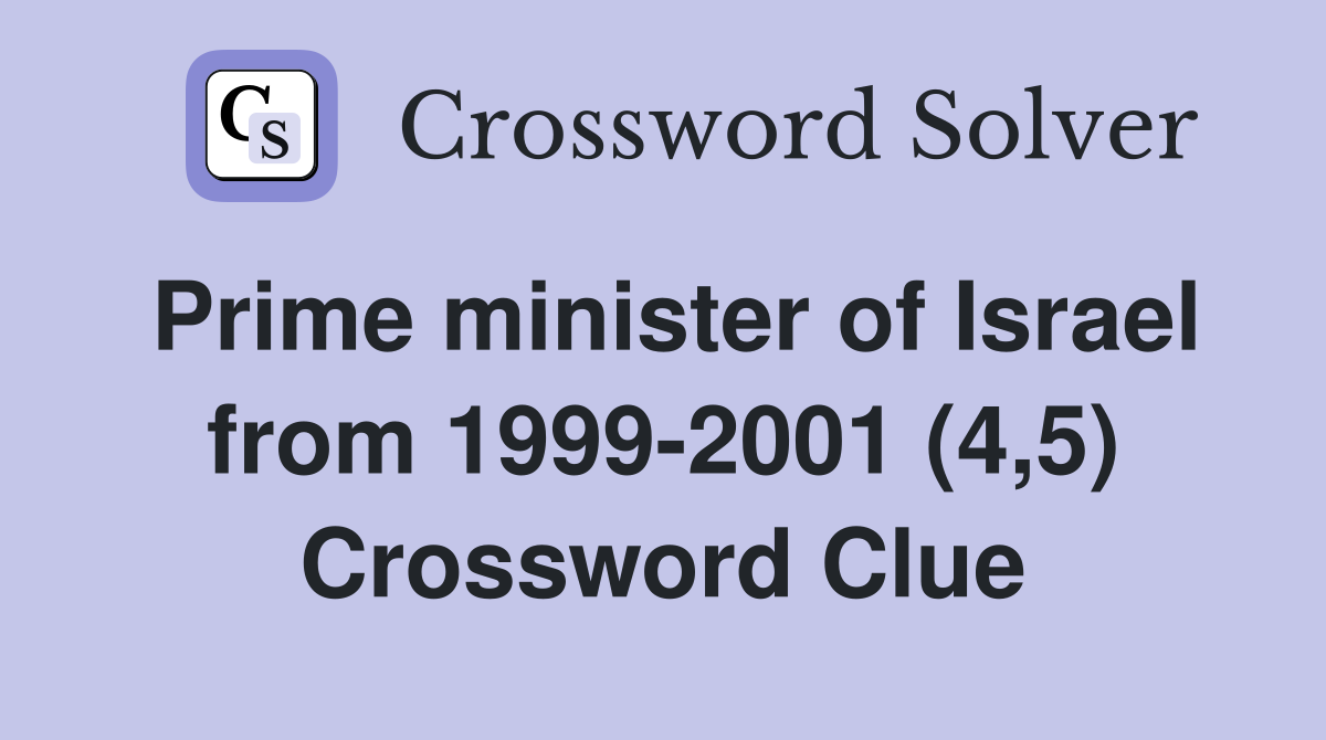 Prime minister of Israel from 1999 2001 (4 5) Crossword Clue Answers