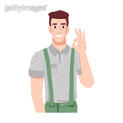 Man showing sigh of approval and enthusiasm Personage gesturing ok